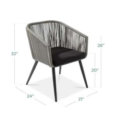 Show moreTransform your outdoor and indoor spaces into charming retreats with the Best Choice Products Set of 2 Patio Dining Chairs. These multifunctional wicker chairs beautifully blend elegance and practicality, making them a perfect enhancement to your living décor. Crafted with a robust powder-coated steel frame and covered in durable all-weather wicker, these chairs are designed to withstand the elements while providing a sophisticated look. The plush polyester cushions offer remarkable comfort, making these not just chairs, but inviting seats for all occasions, from casual chit-chats to festive gatherings.
