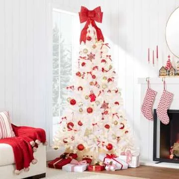 Best Choice Products White Christmas Tree 6ft Pre-Lit Artificial Pine Tree Premium Holiday Decoration w/Warm White Lights, Stand, Easy Assembly
