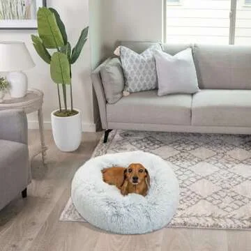 Show moreIntroducing the Best Friends by Sheri Calming Donut Pet Bed in Frost Gray, a sanctuary of comfort designed for your furry companions weighing up to 25 lbs. Perfectly sized at a plush diameter of 23 inches, this bed accommodates small breeds such as Chihuahuas, Pomeranians, and Shi Tzus with ease. The soft, self-warming shag fur lining envelops your pet in warmth, creating an inviting space for deep, restorative sleep that is essential for their wellbeing.