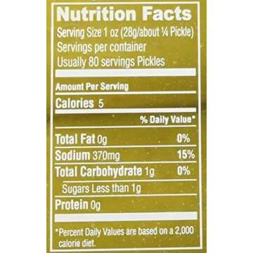 This gallon jar encapsulates a whopping volume of large, full pickles, ensuring that you’re well-stocked for those spontaneous pickle cravings or for sharing with loved ones. The container is thoughtfully designed; made of sturdy plastic, it features a hermetically sealed lid along with shrink wrap for added protection, preventing any leaks and maintaining the freshness of your pickles.
