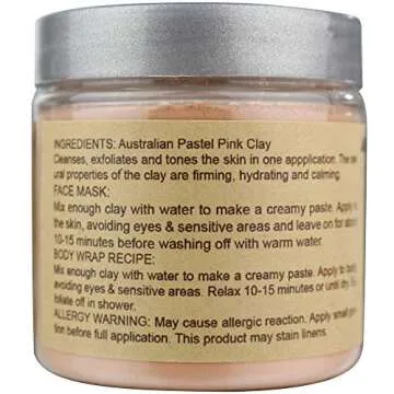 Best Nature's Australian Pastel Pink Clay 100% Pure Natural 8 fl oz - Natural Exfoliating & Detoxifying Facial Scrub - Organic Clay Powder for Face Masks, Body Soaps, Bath Bombs, Makeup, Lotions