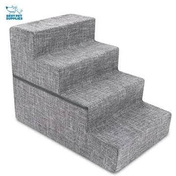 Show more Introducing the Best Pet Supplies Pet Stairs, designed to provide a safe and convenient solution for your beloved furry friends. These pet stairs are perfect for small to medium-sized dogs and cats, offering a gentle way for your pets to climb onto beds, sofas, and more. Made from CertiPUR-US Certified Foam, these stairs ensure that your pets are safe from harmful chemicals while also providing the comfort they deserve.