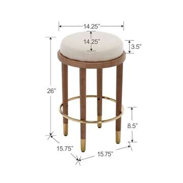 Show moreIntroducing the BESTANO 26” Rustic Backless Bar Stools—an exquisite blend of modern design and rustic charm that beautifully enhances your home. Crafted with decorative gold metal details, these bar stools not only provide practical seating but also serve as stunning decor pieces. The elegant combination of metal and wood evokes a rich sense of history and style, ensuring they stand out in any setting. Measuring 15.75" in diameter and standing 26" high, these stools fit perfectly under your kitchen counters, making them an ideal choice for family gatherings or entertaining friends.