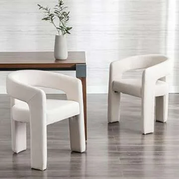Show moreIntroducing the BESTANO Modern Linen Fabric Upholstered Dining Chairs, a perfect blend of style and comfort for your dining space. Designed with a contemporary open-back structure, these chairs feature a unique three-legged design that sets them apart from typical dining chairs. Crafted with beautiful ivory linen fabric, they not only elevate your home decor but also provide a cozy and inviting atmosphere. You'll love the ease of no assembly required; simply take them out of the box and start enjoying them immediately!