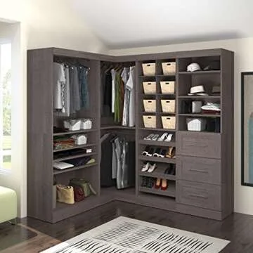 Bestar Walk-In Closet Organizer System 83-inch with Drawers for Bedroom, Entryway, Mudroom, Pur Collection, Modern, White