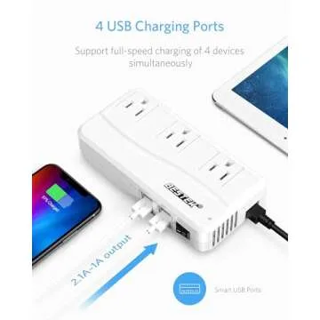 Equipped with 3 AC outlets and 4.2A USB charging ports,...