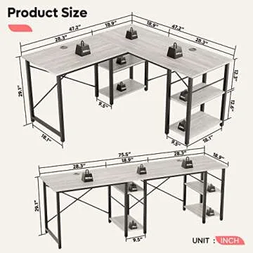 Bestier L Shaped Desk with Shelves 75 Inch Reversible Corner Computer Desk or 2 Person Long Table, Writing Study Desk for Home Office Small Space Bedroom Apartment, Wash White