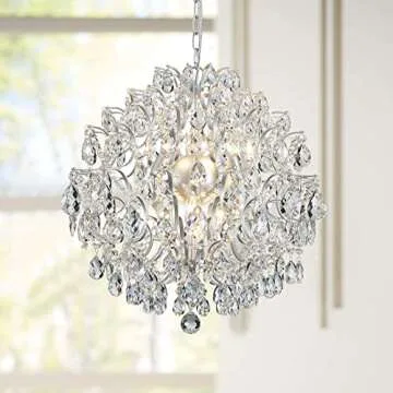 Show moreIlluminate your living space with the enchanting Bestier Silver Modern Pendant Chandelier, a breathtaking lighting fixture that transforms any room into a luminous sanctuary. Crafted with intricate crystal glass design, this chandelier boasts a unique aesthetic that won't chip, fade, or tarnish over time, making it a long-lasting addition to your home decor. Measuring 19 inches in diameter and 21 inches in height, and featuring an adjustable chain that extends up to 40 inches, this chandelier is versatile enough to complement any setting. Imagine the allure of this elegant piece hanging gracefully above your dining table, creating an inviting atmosphere for dining experiences, or brightening up your living room with its shimmering beauty.