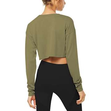 Bestisun Long Sleeve Sports Crop Tops for Women Workout Cropped Athletic Sports Shirts Army Green S