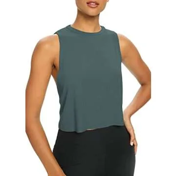 Bestisun Workout Tops for Women Yoga Athletic Gym Clothing Open Back Sports Pilates Clothes Deep Green S