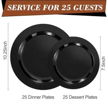Bestluck 50PCS Black Plastic Plates, Black Disposable Plates for 25 Guests, 25 Black Dinner Plates 10.25 inch and 25 Dessert Plates 7.5 inch, Black Plates for Party, Wedding and Dinner