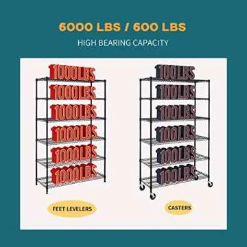 When compared to similar products, the BestMassage Heavy Duty Wire Shelving Unit clearly stands out due to its higher weight capacity and customizable features. While many competitors offer standard shelving that may bow under heavy loads, this unit promises stability, allowing for a maximum weight of 600 lbs per shelf without compromising performance. Additionally, its effortless assembly process sets it apart, especially when compared with other brands that require tools or complicated instructions.