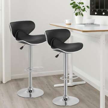 BestOffice Bar Stools Set of 2, Counter Height Adjustable Bar Stools with Back Bar Stool PU Leather Swivel Bar Stool Kitchen Counter Bar Stools Dining Chairs