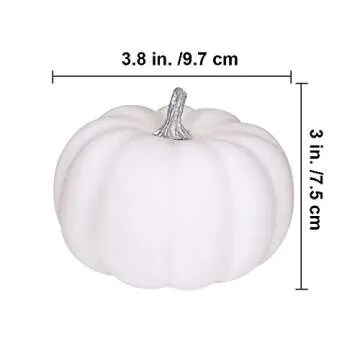 Show more Introducing the BESTTOYHOME 8 Pcs Realistic 4" Fall Harvest Small Off White Mini Artificial Pumpkins – a delightful addition to your home décor for the autumn season! Crafted from high-quality materials, these miniature pumpkins are designed to provide a realistic look without the hassle of real pumpkins, making them the perfect choice for all your fall decorating needs. Measuring at 4 inches, their versatile size makes them ideal for various uses, whether you're planning a cozy family gathering, a festive Halloween bash, or simply wanting to add some seasonal charm to your living space.