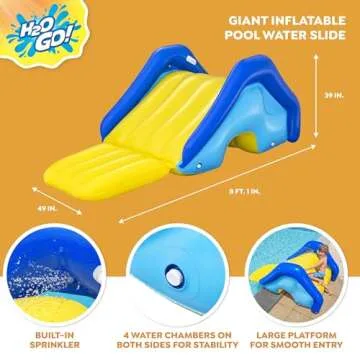 Show more Introducing the Bestway H2OGO! Giant Inflatable Outdoor Swimming Pool Water Slide, the ultimate summer companion designed for endless hours of fun and excitement. This giant waterslide is perfect for hot summer days, providing a thrilling ride right into your in-ground swimming pool. Crafted from durable PVC materials, this waterslide is built to withstand all the splashes and giggles your family can muster, ensuring a safe and enjoyable experience for everyone. Its dimensions of 97.24 x 48.82 x 39.37 inches create a generous slide size that can accommodate multiple users at once, making it the centerpiece of your backyard gatherings.