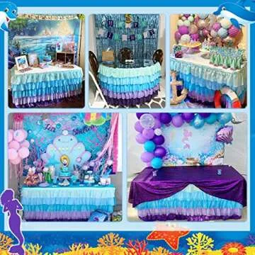 Besutolife Mermaid Table Skirt 6ft Mermaid Tablecloth for Rectangle Tables Baby Shower Gender Reveal Mermaid Birthday Party Decorations
