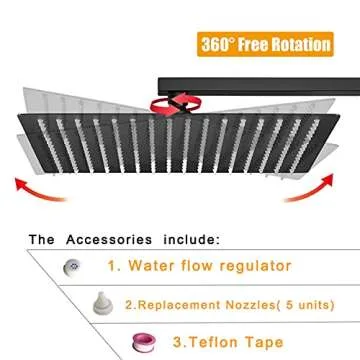 BESy 12 Inch Rain Shower Head, 12" Square Rainfall & High Pressure Stainless Steel Bath Showerhead, 1/16" Ultra Thin, Waterfall Full Body Coverage with Silicone Nozzle, Matte Black Finish