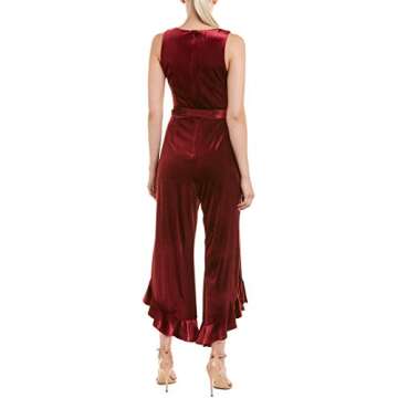 Betsey Johnson Women's Flare Leg Velvet Jumpsuit, Burgundy, 4