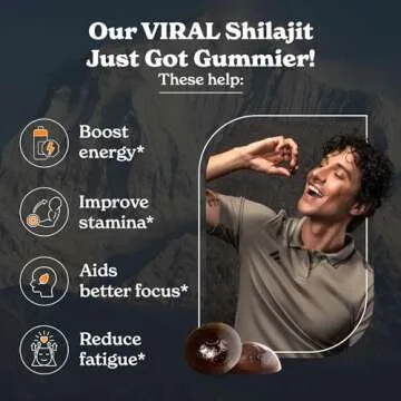 Show more Introducing the ultimate wellness booster - our pure Himalayan Shilajit Gummies, meticulously crafted to elevate your energy and support your immune system. These delicious gummies are packed with over 85 essential trace minerals that work in perfect harmony to combat fatigue and enhance vitality. Each bite not only tastes great but also contributes to sustained energy levels throughout your busy day.