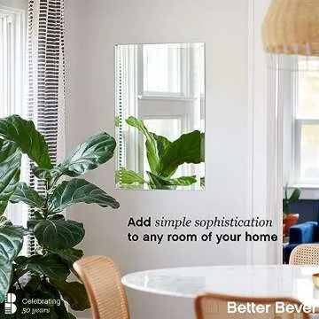 Show more Introducing the perfect addition to any home decor – a beautifully crafted frameless mirror that's designed to elevate any space! With its classic rectangle design, this mirror brings both simplicity and sophistication to your bathroom vanity, hallway, or living area. Made from authentic 1/4-inch thick glass, it ensures clarity and eliminates distortion, giving you a true reflection. The mirror features a finely crafted 1-inch bevel that adds a dash of elegance, making it a stunning centerpiece without appearing overly extravagant.