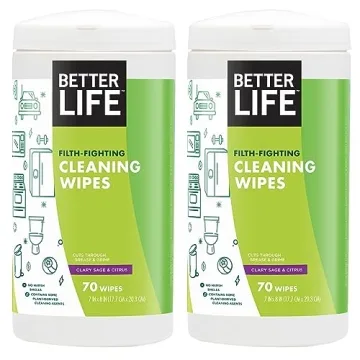 Transform your cleaning routine with the Better Life Natural All-Purpose Cleaning Wipes, available in a convenient 70 Count (Pack of 2). Made with a commitment to safety and sustainability, these wipes are formulated using powerful plant-based ingredients like corn and coconut, ensuring they are tough on grime yet gentle on your home and the environment. Infused with invigorating aromas of clary sage and citrus extracts, these wipes uplift...