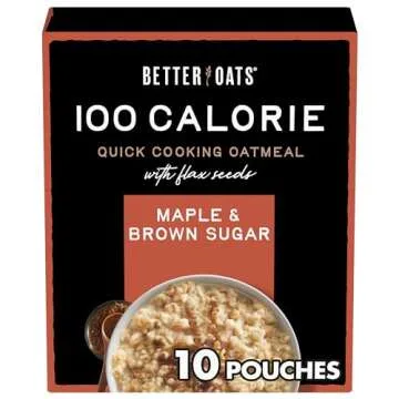 Better Oats 100 Calorie Maple and Brown Sugar Oatmeal Packets, 100 Calorie Oatmeal Pouches, 90 Second Instant Oatmeal with Flax Seeds and Rolled Oats, Pack of 6, 9.8 OZ Pack