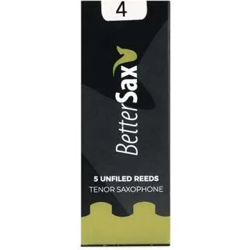 Show more Introducing the BetterSax Premium Jazz Cut Tenor Saxophone Reeds - Advanced Strength 4.0 (5-Pack), the ultimate choice for serious saxophonists seeking unparalleled quality and performance. Each reed is meticulously crafted with an innovative cut design, ensuring that you experience optimal resonance and sound every time you play. Made from certified organic cane, these reeds promise a pure, rich sound while remaining environmentally sustainable. With a commitment to both performance and the planet, our reeds eliminate plastic packaging, opting instead for eco-friendly materials. You can trust BetterSax to deliver a superior playing experience without compromising on quality or environmental responsibility.