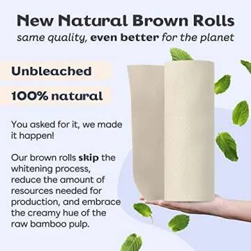 Betterway Bamboo Natural Brown Paper Towels - 8 Rolls, 2 Ply, 110 sheets - Plastic Free, Disposable Kitchen Paper Towels - Select Size, Tree Free, Compostable, Strong & Absorbent
