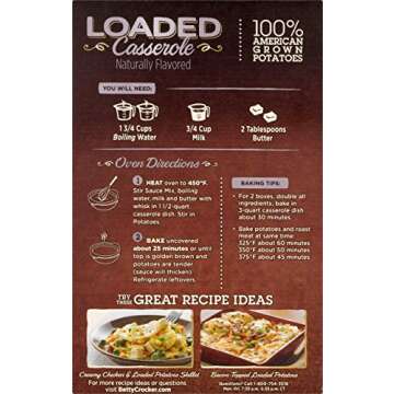 Show moreIndulge in the incredible flavor of Betty Crocker Loaded Casserole Potatoes, a delightful side dish that's ready in a flash! With 100% real sliced potatoes as the star ingredient, these casserole potatoes are crafted to deliver that authentic taste you crave. Each package contains 4.5 ounces of mouthwatering goodness, loaded with a creamy cheddar sauce and a savory bacon flavor that makes any meal feel special. Whether you're hosting a family dinner or a simple weeknight gathering, this dish is the ideal companion for everything from grilled meats to roasted veggies.