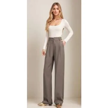 Betusline Women's Wide Leg Long Dress Pants High Waisted Business Casual Straight Office Trousers, 1#Brown, X-Small