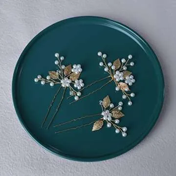 Show moreDiscover the exquisite charm of the Beusoulover Hair Accessories with this enchanting set of 3 gold hair pins, designed specifically for the modern bride and her bridal party. Each piece, artfully adorned with pearl flowers and delicate golden leaves, captures the essence of elegance and sophistication. Handcrafted with love, these hair pins not only enhance the beauty of any hairdo but also reflect the artisanal quality that sets them apart. With their U-shaped clip design, these hair pins are compatible with a variety of hairstyles—from intricate updos to flowing locks—ensuring a secure yet comfortable fit throughout any celebration.