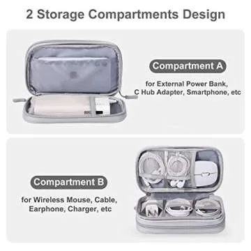 Bevegekos Electronics Accessories Organizer Pouch Bag, Designed for Power Adapter/Charger/Cables/Mouse, for Travel (Light Grey)