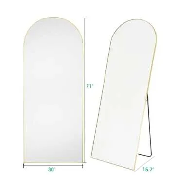 Show moreDiscover elegance with the BEVERDY Full Length Mirror, an oversized arched mirror that combines contemporary style with timeless design. Measuring an impressive 30" x 71", this large mirror is thoughtfully crafted to enhance any room in your home, from the bedroom to the living room and beyond. The stunning top arch design, complemented by a brushed metal frame, brings a chic sophistication that not only accentuates your decor but also provides a practical solution for daily outfit checks. Enjoy the versatility of its freestanding setup or the option to mount it on the wall for added convenience.