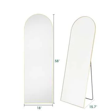 BEVERDY Full Length Mirror, Floor Mirror, 18"×58" Arched Full Length Mirror with Stand, Full Body Mirror, Standing Mirror, Wall Mounted Mirror for Bedroom, Living Room, Gold