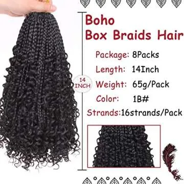 Beverlee 14 Inch Boho Box Braids - 8 Packs of Soft Synthetic Crochet Hair with Curly Ends