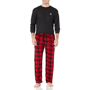 Beverly Hills Polo Club Men's Polar Fleece Pajama Set - Black & Red, Small