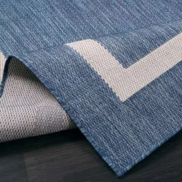Beverly Rug Waikiki Indoor Outdoor Rug 5x7 Washable Outside Carpet for Patio Deck Porch Bordered Modern Area Rug Water Resistant Blue - White