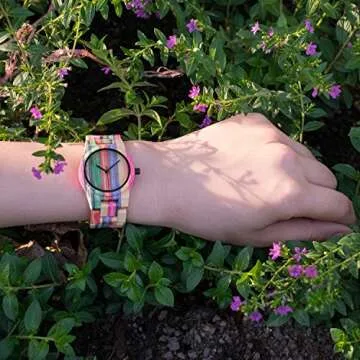 With the BEWELL Women's Fashion Colored Bamboo Wooden Watch, you won’t just wear a watch; you will wear a piece of art that resonates with nature's beauty and elegance. The vibrant colors are sure to uplift your spirits, glancing at them can brighten your day, while the lightweight build promises comfort throughout your day. This isn’t merely a timepiece; it’s an expression of your unique style and love for nature.