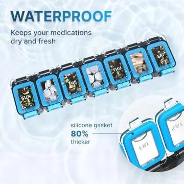 BEXEEN Weekly Medicine Pill Organizer Waterproof 7 Day Large Pill Box Daily Pill Case Cute Vitamin Organizer Portable Pill Container Travel Pills Holder XL Supplement Medication Dispenser One a Day
