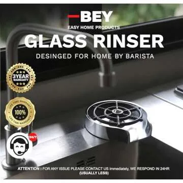 BEY Automatic Glass Rinser - Powerful Cup Washer for Kitchen Sink, Stainless Steel Baby Bottle Cleaner Sinks Attachment, Bar Accessories Spray Metal