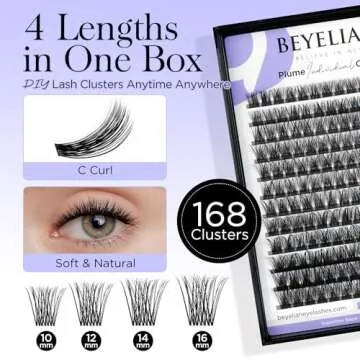 BEYELIAN Lash Clusters, 168 Pcs Individual Cluster Lashes, 10-16mm C Curl DIY Eyelash Extension Super Thin Band Resuable Soft Glue Bonded Lash Extensions (Style3 0.07 Mix Black Band)