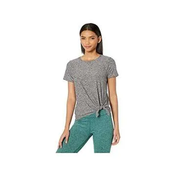 While many yoga tees flood the market, the Beyond Yoga Ties Tee stands out for its combination of high-quality materials and thoughtful design. Unlike typical tees that may restrict movement, our four-way stretch fabric and relaxed fit ensure the ultimate freedom in every pose. Additionally, the stylish tie detail sets it apart from basic offerings, merging fashion with fitness seamlessly.