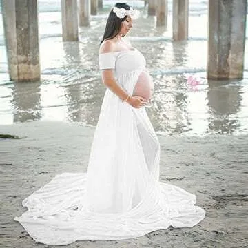 Elevate Your Maternity Photos with Beyonds Slit Off Shoulder Dress
