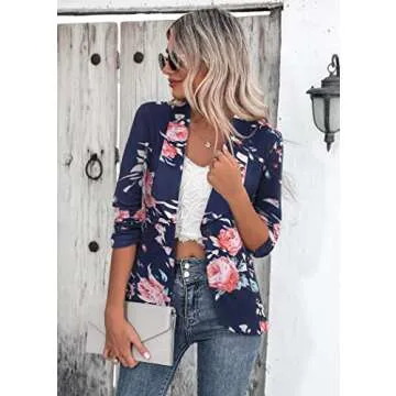 Show moreIntroducing the Beyove Women’s 3/4 Stretchy Ruched Sleeve Open Front Blazer—where professional elegance meets comfort and versatility. This stylish blazer is crafted from a soft and lightweight stretchy fabric that gracefully hugs your body while allowing for easy movement throughout the day. Its unique design features a 3/4 length scrunched sleeve and an open front with a single button, making it an easily adaptable piece for any occasion. Available in stunning navy floral, it serves as a perfect wardrobe addition for both casual outings and formal office wear.