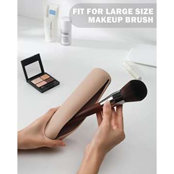 BEZOX Makeup Brush Holder - Travel Silicon Make Up Brush Case with Magnet Closure, Compact Brush Bag Travel Essentials - Khaki