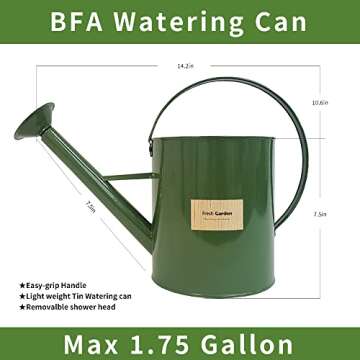 When comparing the BFA Plant Watering Can to others on the market, its unique features truly set it apart. Many watering cans lack the detachable sprayer or long spout, which often limits the user's ability to water efficiently. The BFA can’s galvanized steel construction offers superior durability and aesthetic appeal, outmatching the commonly found plastic alternatives that may not hold up over time. Investing in a BFA watering can means choosing longevity without sacrificing design.