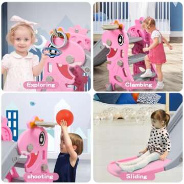 BFAZKXY Indoor Slide for Toddlers 1-3, Foldable Kids Toddler Indoor Slide Playset, Indoor and Outdoor Playground, Toddler Climber Playset with Basketball Hoop and Ring Toss(Pink)