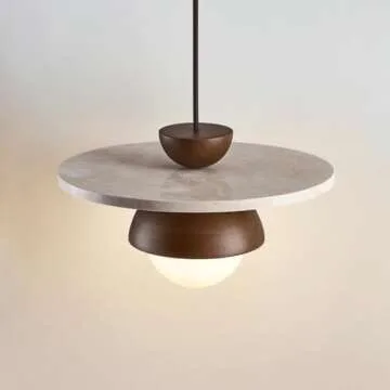 BFFGKGL Retro Mini Yellow Travertine Pendant Light Japanese Style Wabi Sabi Natural Stone Restaurant Hanging Light Mid Century Glass Suspension Light Modern Nordic Walnut Cup Chandelier for Farmhouse