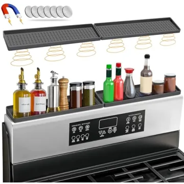 Show moreOur innovative spice organizer is the perfect addition to your kitchen, designed for optimal convenience and functionality. Measuring at a total size of 30*3.5*0.59inch/76*9*1.5cm, this magnetic stove rack is crafted to fit most flat and slightly curved stoves available in the market. Featuring a unique two-sectioned design, it is made from high-quality, food-grade silicone that is both thin and soft, allowing it to conform seamlessly to your stove, even with operational switches in place. Before you make your purchase, we recommend measuring your stove to ensure a perfect fit for this versatile spice rack.