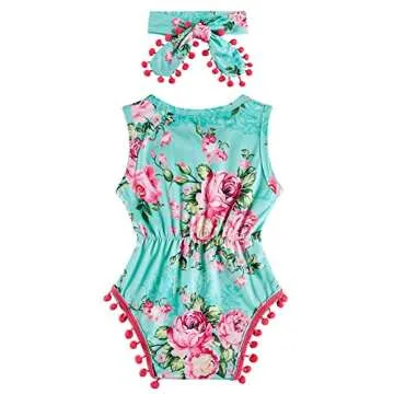 BFUSTYLE Flower Baby Girls Clothes 18-24 Months Rompers with Headband Baby Summer Outfit One-Piece Bodysuit